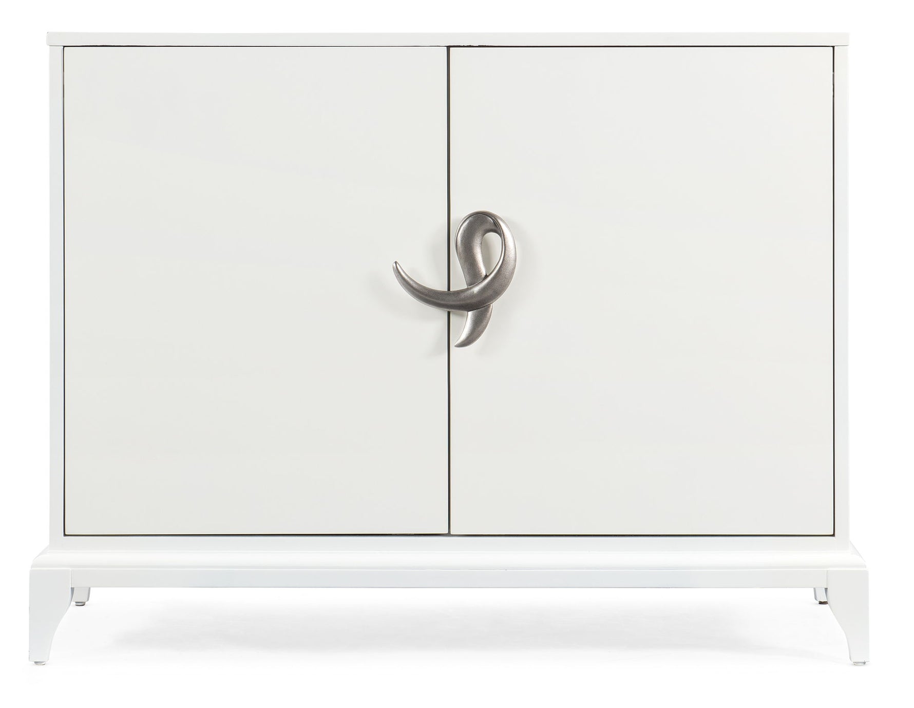 Unit price perSleek and modern meets soft and soothing with the Unity Chest. Part of a curated collection to honor the spirit and courage of those diagnosed with breast cancer, the chest contrasts a creamy white exterior with a magenta-colored interior, accented by antique pewter ribbon-designed hardware. The two doors have soft-close hinges and one adjustable shelf behind each. Crafted of Maple Veneers, a portion of the proceeds from each chest sold goes to the Susan G. Komen Foundation.