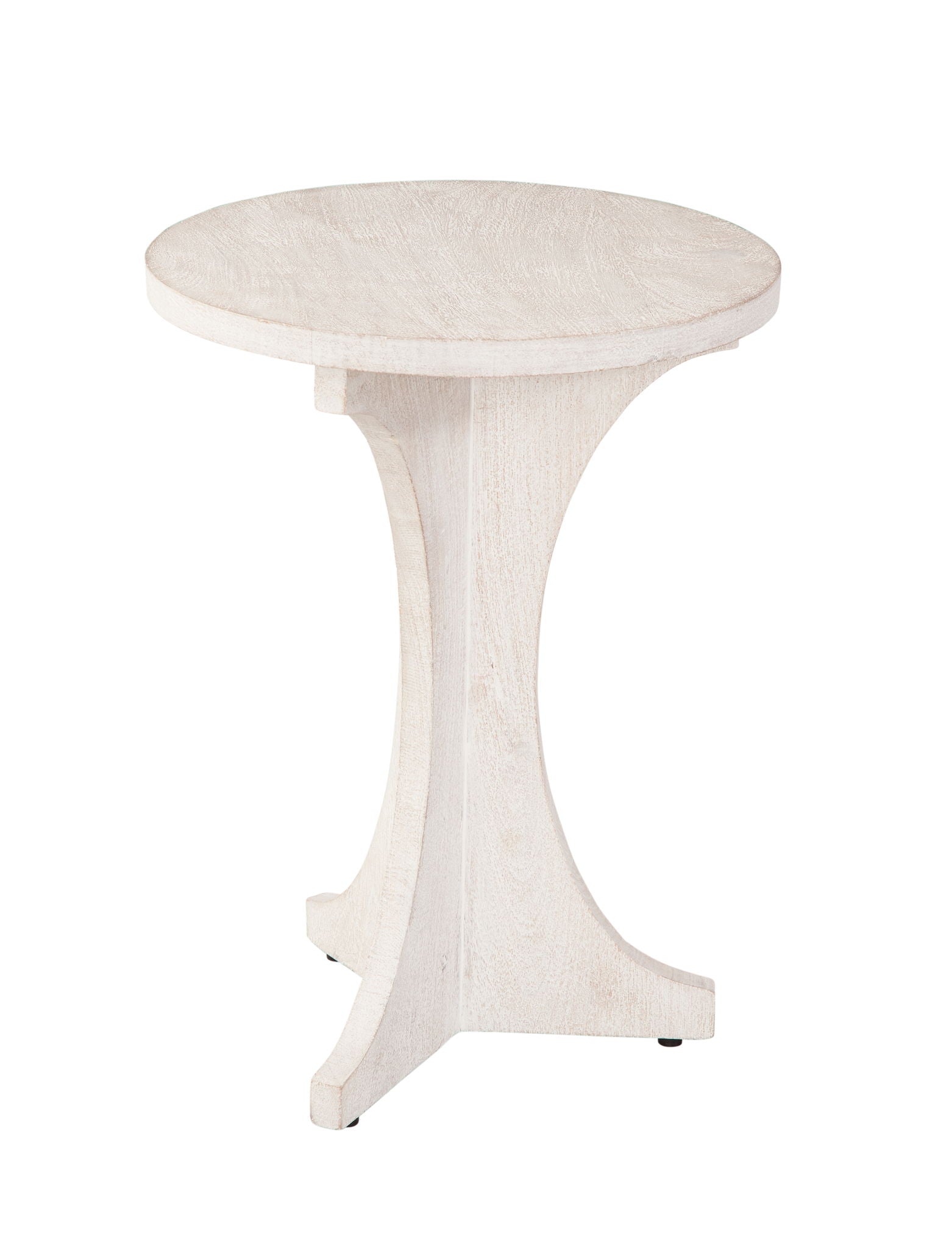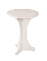 The Tait Accent Table has a boho, coastal design style. The solid mango wood table features a sandblasted finish, adding texture to the white-washed color.