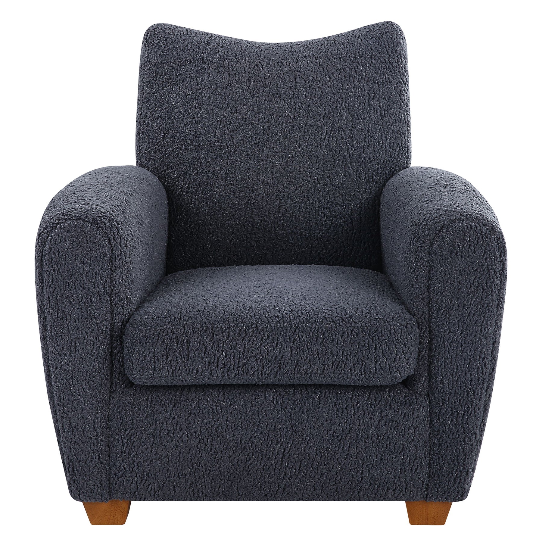 • With Its Curved Track Arms And Supportive Back, This Cozy Accent Chair Is The Perfect Balance Of Comfort And Style. Fully Upholstered In A Slate Gray Faux Shearling And Accented By Walnut Stained Wooden Feet.