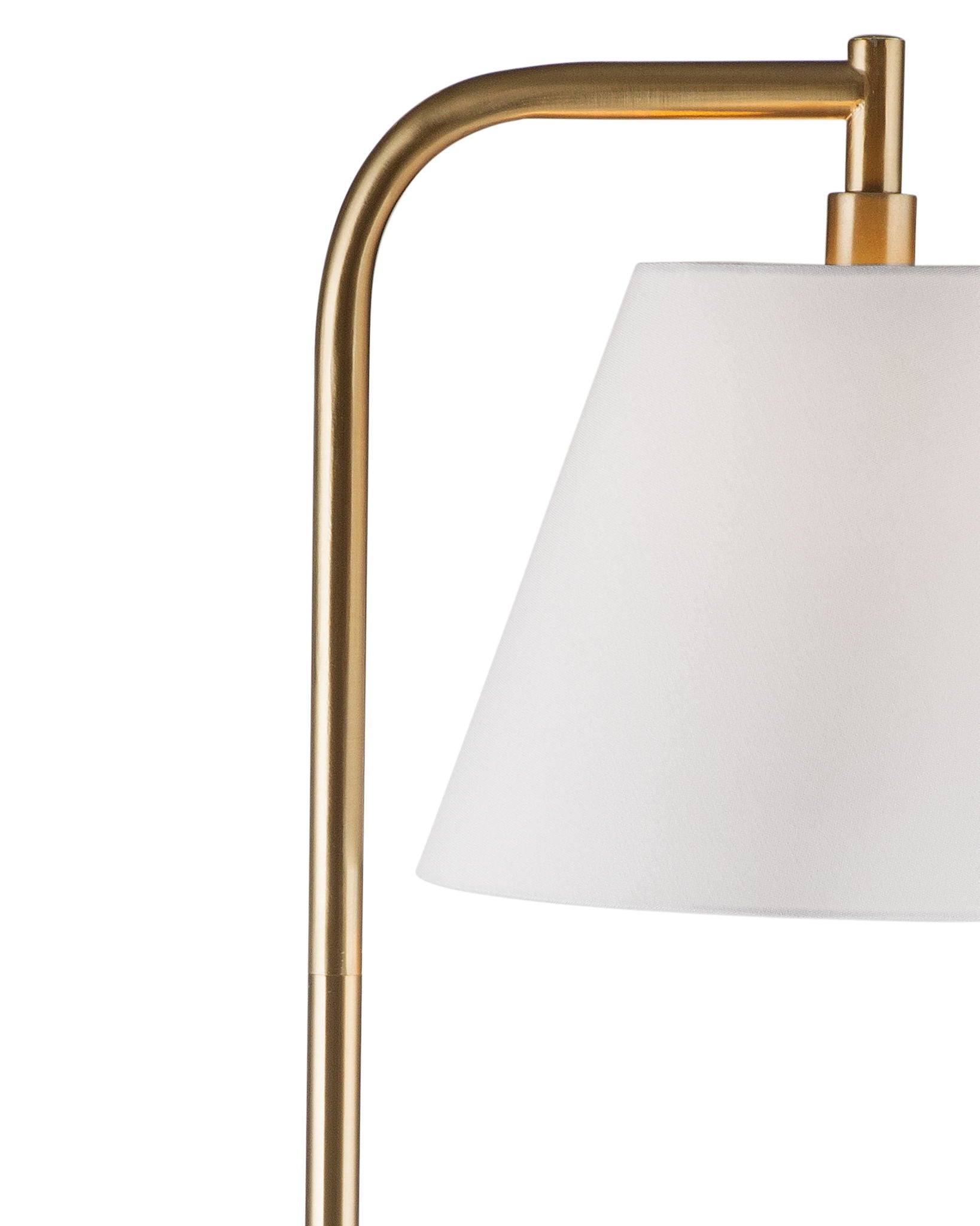 The Telfair Floor Lamp combines modern design with timeless elegance, featuring a sleek metal body adorned with a white tapered shade. Its gold finish adds a touch of sophistication to any space, effortlessly blending contemporary style with classic charm.
