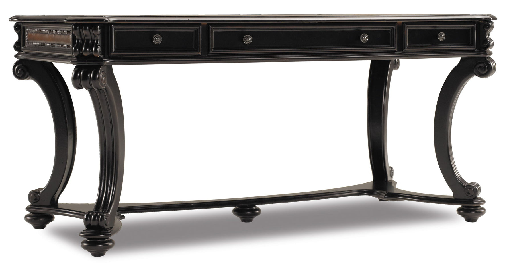 Telluride's black paint finish with heavy reddish brown rub-through, carved leather panels and nail head trim give this collection a rich masculine look.