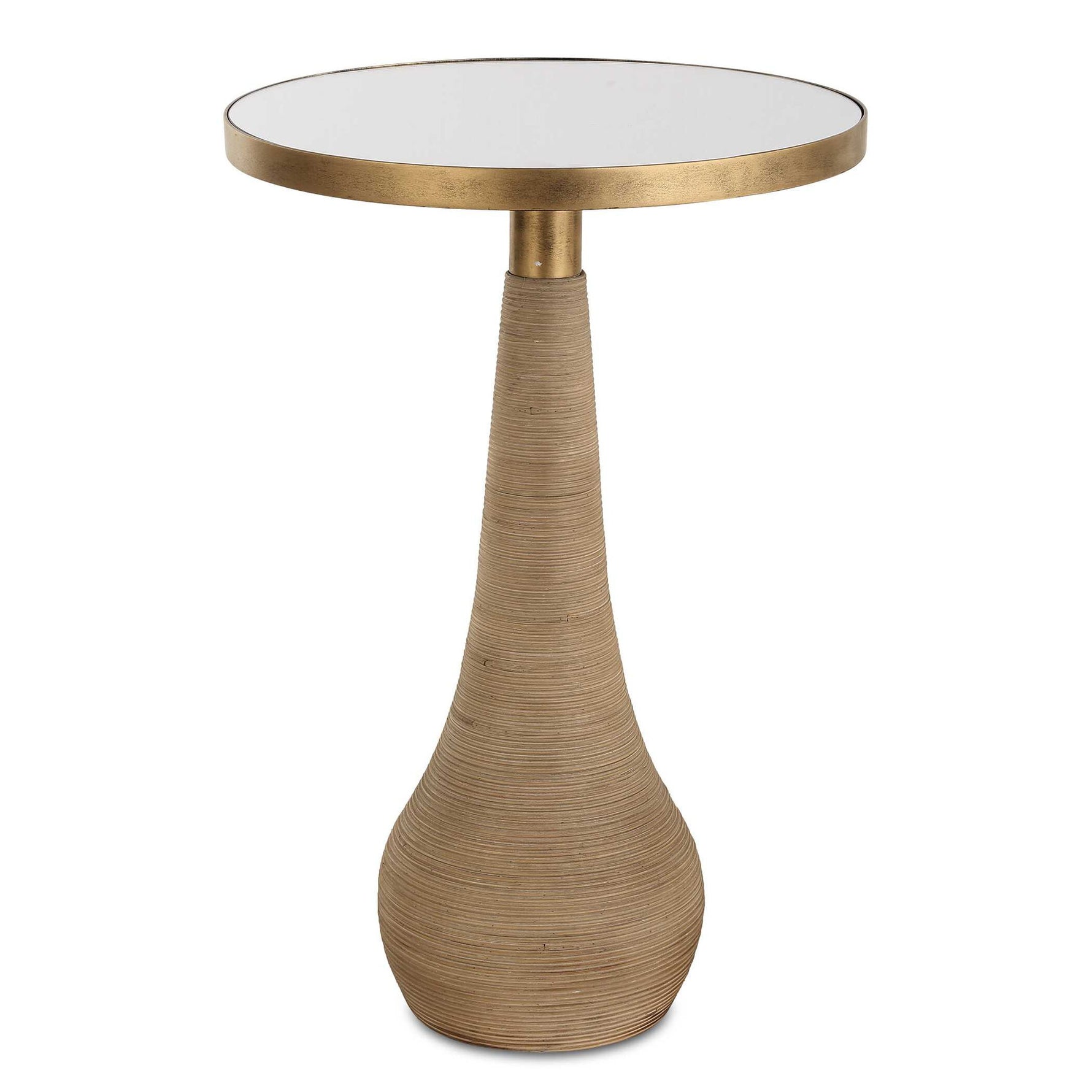 Organic And Luxurious This Accent Table Is The Culmination Of Both Natural Rattan And Antique Brass Finished Iron. Completed By A Glamourous Mirror Top Ready To Serve Any Practical Use.