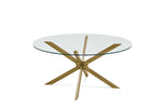 The Tess Round Cocktail Table combines modern style with timeless charm, featuring a striking gold starburst base that catches the eye and a sleek glass top that adds a sense of lightness. This table serves as the perfect focal point in any living space, bringing a touch of luxury and sophistication that enhances the overall ambiance.