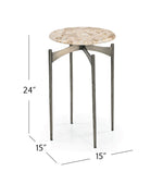 The Thea accent table effortlessly combines modern design with timeless elegance, making it a versatile addition to any space. Featuring an Italian crema marble top resting on a four-legged iron base finished in antique nickel, this table exudes sophistication and durability. Crafted with natural marble, each piece showcases unique veining and patterns, adding character to your home decor.