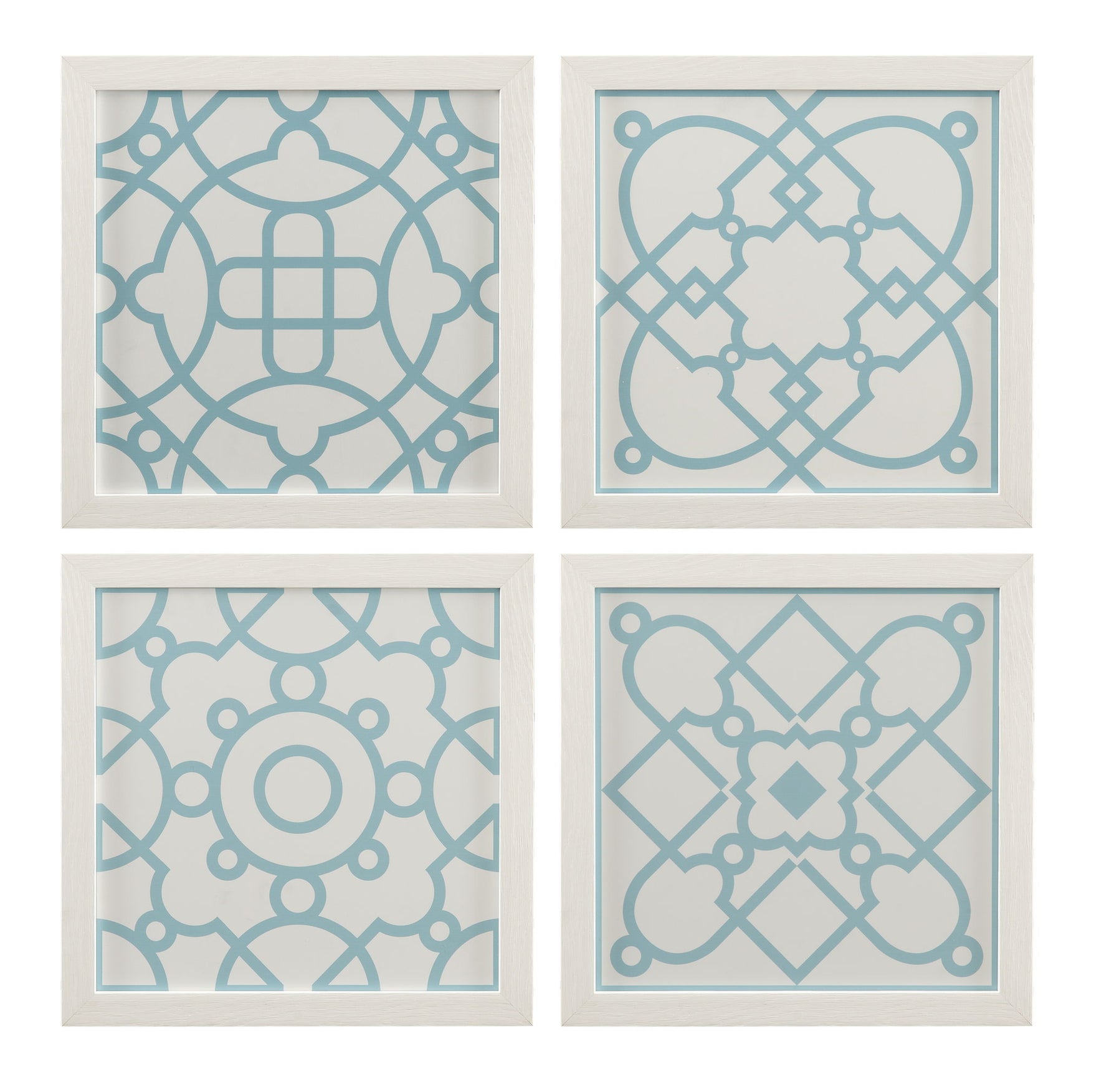 Tile Motif Framed Print (Set of 4) - Light Blue