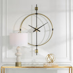 - Timeless With A Contemporary Feel, This Wall Clock Features A Braided Metal Frame Finished In Brushed Brass With Satin Black Accents. Quartz Movement Ensures Accurate Timekeeping. Requires One "AA" Battery.