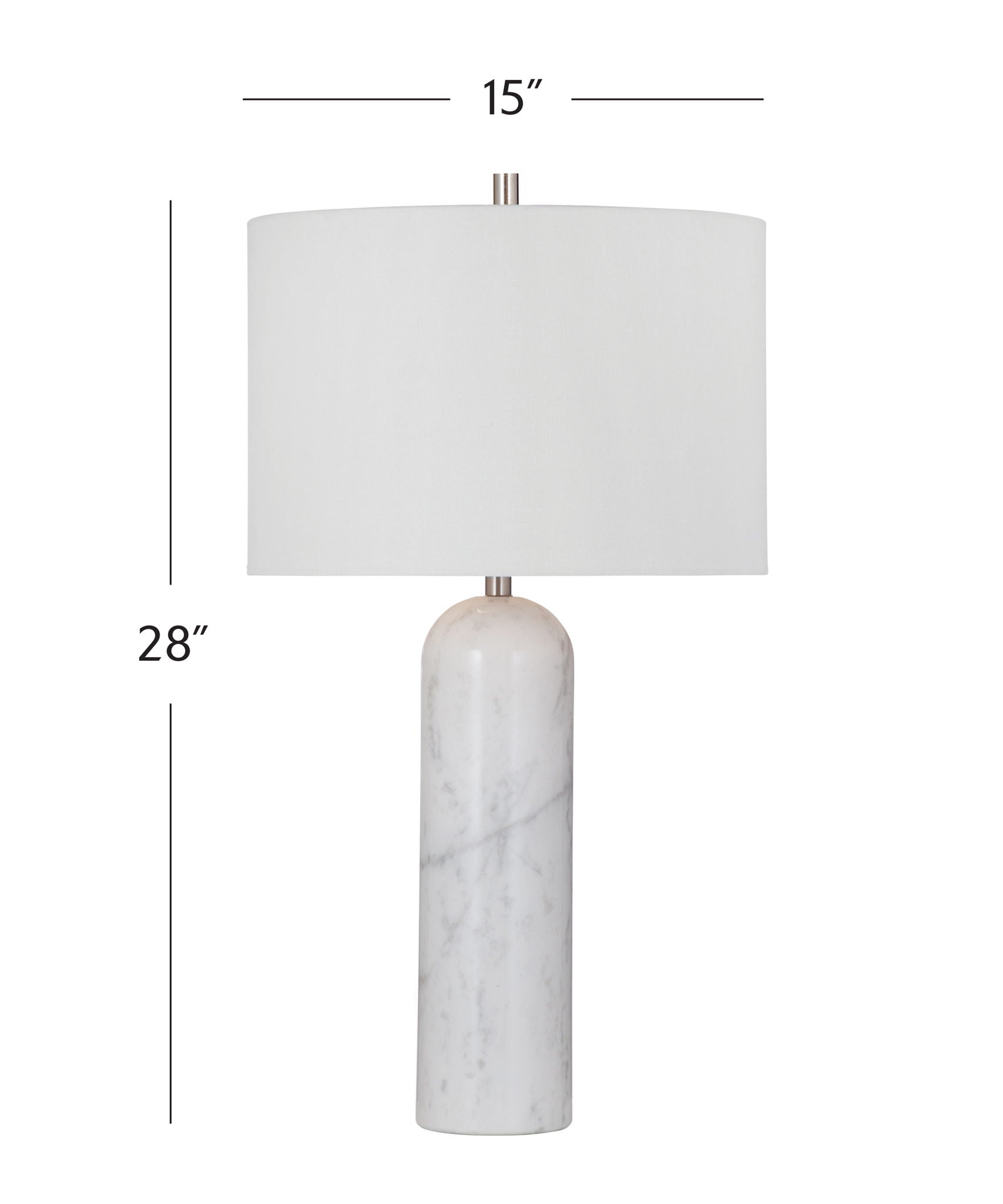 Fashioned from marble, the Tioga Table Lamp boasts an elegant and timeless design. Accompanied by a white linen drum shade, this lamp strikes a harmonious balance between classic aesthetics and modern allure. Meticulously crafted with attention to detail, the Tioga Table Lamp stands as a refined addition to interior spaces, seamlessly blending enduring design with a touch of contemporary sophistication. The white marble finish complements the marble body, creating a visually appealing unity. With its stylish design and meticulous craftsmanship, the Tioga Table Lamp not only adds a modern flair to any room but also provides a soft and inviting illumination, making it a versatile and impactful contribution to interior decor.