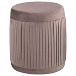 Add a hint of comfort and color to your living room with a modern drum ottoman. Its petite size is perfect for an accent chair, offering flexibility to serve as footrest or seat. It features mauve upholstery with a deep, muted tone that complements in a wide range of spaces. Its round silhouette is complemented with pleated details, adding a sense of warmth and dimensionality. Foam cushioning assures excellent support and comfort.