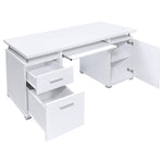 Upgrade your home office with sleek style and fabulous functionality. This handsome office desk has everything you need to be productive. Its large cabinet features an adjustable shelf for convenient storage. It includes a large file cabinet that fits legal and letter size files, as well as a smaller top drawer and keyboard tray. This desk is a stylish addition to any office.