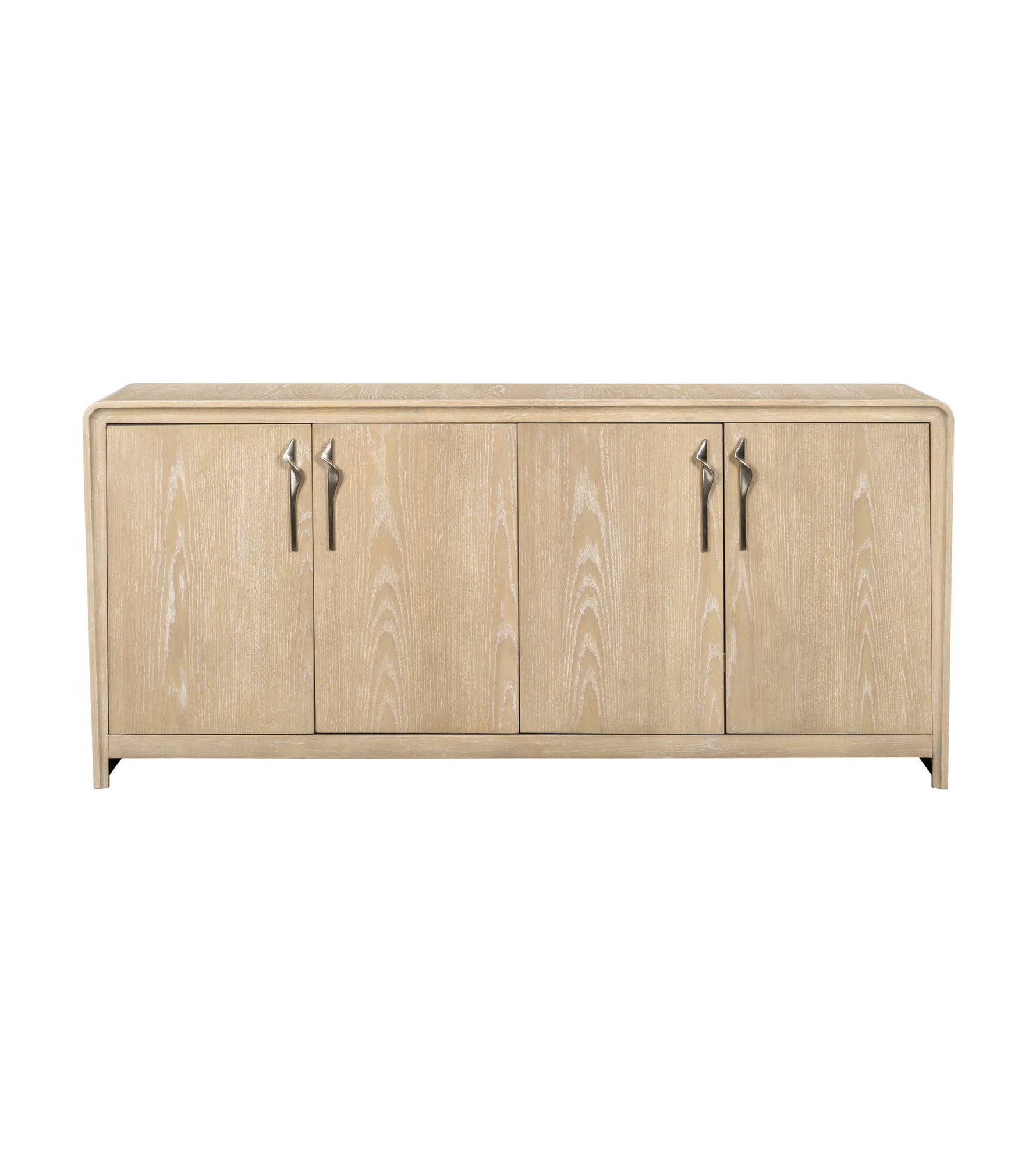 The Trifecta Server is a study in modern refinement, blending sleek design with thoughtful functionality. Crafted from solid wood and ceruse flat-cut oak veneers in a driftwood finish, its soft, rounded waterfall edges lend a sculptural elegance. Four push-to-open doors conceal adjustable shelving and built-in media cord management, offering versatile storage that adapts to both dining and living spaces. The Trifecta Server brings timeless style and elevated utility to any room.