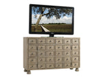 - Appearing To Be An Apothocary Chest, Yet The Two Top Drawers Have Drop Fronts For Media Componets, The Two Outer Columns Sport Two Drawers Each And The Center Four Columns Are Two Doors Which Open To Three Adjustable Shelves