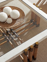 - The Square Cocktail Table Gives Prominence To The White Cordova Stone With Its Striking Brass Inlay And Inset Glass Top