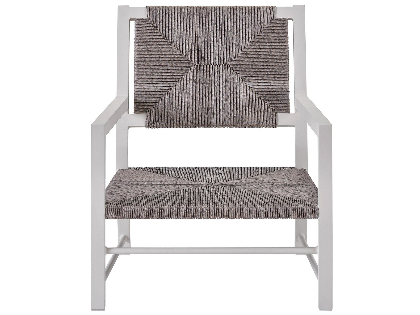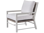Unit price perModern with a touch of coastal flair, the Tybee Lounge Chair includes greige wicker detailing, a crisp white frame, and plush upholstered cushions.