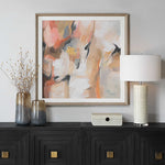 Infuse Your Space With Vibrant Energy Through Uphill, A Captivating Abstract Piece That Creates Cohesion Between Warm Toned Hues And Striking Pops Of Golden Yellows And Blush Pinks. The Piece Is Surrounded By A Natural Pine Toned Frame With A White Linen Liner. Artwork By Silvia Vassileva.