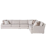 Unit price per22"pillows in Tahiti Parchment; 24" pillows in Padme Taupe; With cozy seat cushions, clean-lined armrests and boxed legs, the Hadlee Sectional is a down-to-earth living room furnishing.