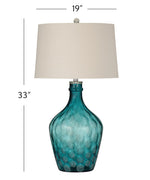 The Valarie Table Lamp combines the earthy essence of Boho style with traditional elegance. Its blue art glass body is detailed with textured white circular patterns that lend a handcrafted look, reminiscent of classic pottery. The design is paired with a simple, fabric shade to cast a warm, inviting light. Ideal for anyone looking to add a touch of artisanal charm to their living space, this lamp melds the warmth of traditional design with the laid-back vibe of Bohemian decor.