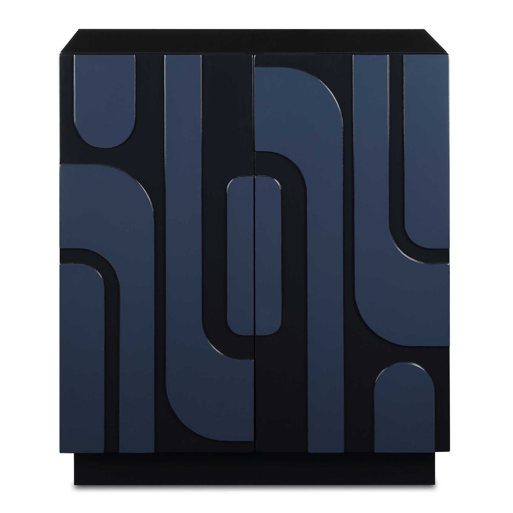- Highlighting A Sleek Modern Look, The Valeria Cabinet Features A Stunning Combination Of Glossy Cobalt Blue And Navy Lacquer. Featuring Plenty Of Storage Space And A Striking Look This Cabinet Can Become The Focal Point Of Any Room By Marrying Style And Functionality. Has Two Fixed Interior Shelves.