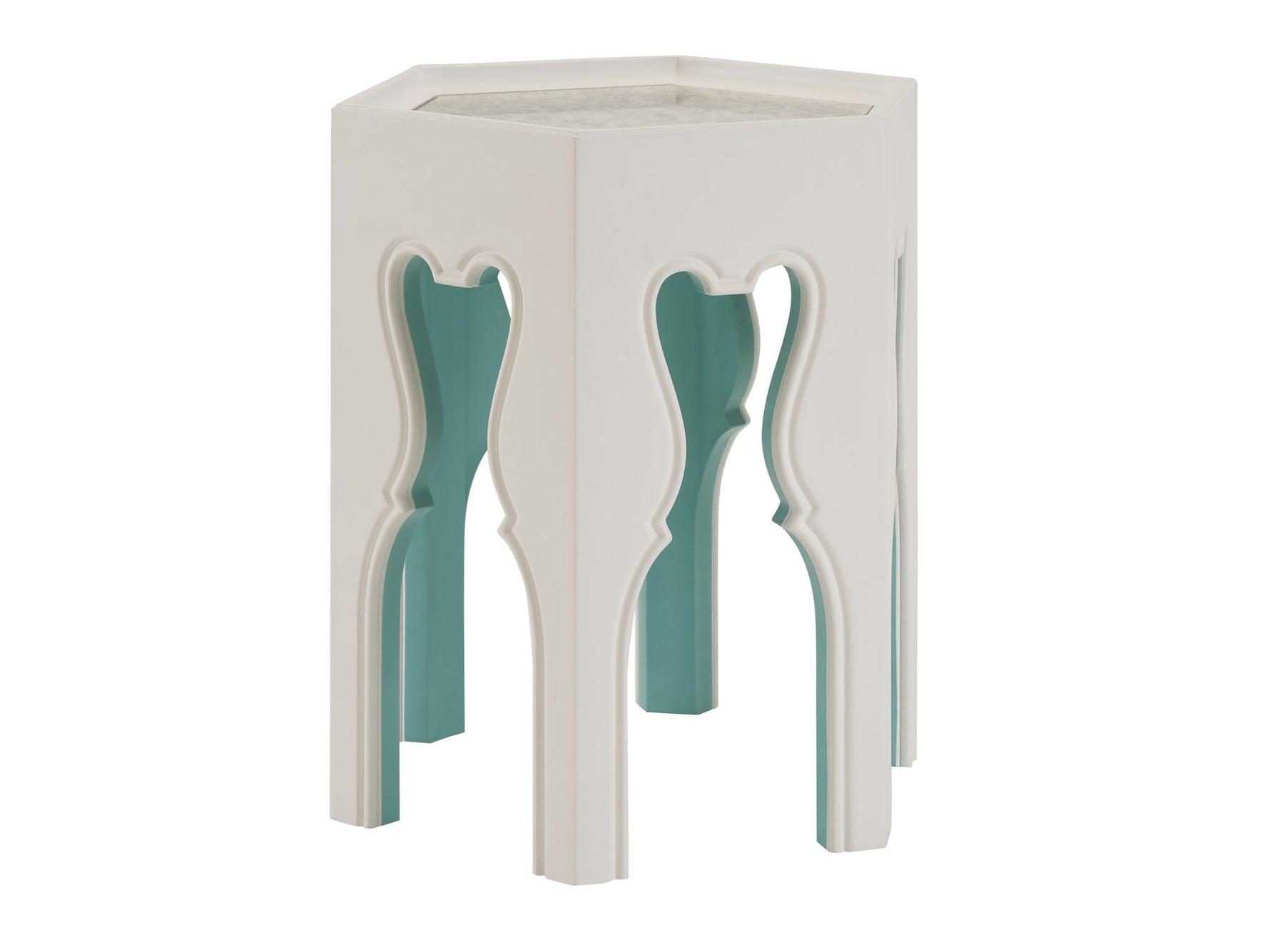 Villa Blanca - Bilbao Hexagonal End Table With Teal Accents - White / Blue