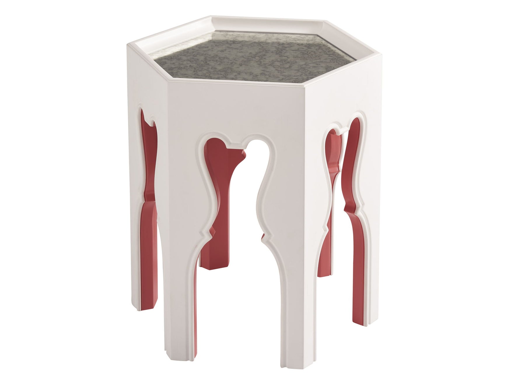 Villa Blanca - Bilbao Hexagonal End Table With Coral Accents - White / Red