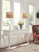 - The Mykonos Console Is A Signature Piece In The Collection, With A Decorative Carved Apron, Graceful Cabriole Legs And A Veneered Carrara Marble Top.