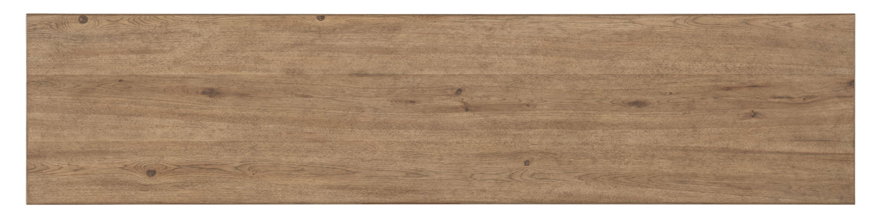 Unit price perCapture the essence of the Napa Valley lifestyle with the Vineyard Row Console Table. Measuring 86 inches wide by 20 inches deep, the table has rustic wine barrel-influenced pedestal bases and hammered metal accents. Crafted of Pecky Hickory Veneers with resin, the top is finished in the light and airy Sonoma tone, and the base is in Napa, a darker tone inspired by the red wines of the Napa Valley