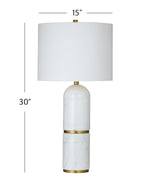 The Wake Table Lamp features a sleek marble pill-shaped base with brass accents, offering a modern and sophisticated look. Its contemporary design blends the timeless elegance of marble with the warmth of brass, creating a striking visual contrast. This lamp adds both style and functionality to any space, providing soft, ambient lighting while enhancing your homes decor. The Wake Table Lamp is a perfect choice for those looking to add a refined, contemporary touch to their interior.