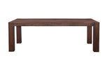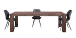 The Walsh Dining Table embodies a rustic modern farmhouse aesthetic, crafted from solid mango wood treated with a sandblasted technique and adorned in an antique walnut stain. Its sturdy construction ensures durability, while the distinctive design elements, including the substantial legs that pierce the tabletop, add character to any dining space.