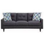 Chic, retro-inspired design perfect for small rooms. Tapered cylinder legs add style and support. Bright, modern leaf print, accent pillows included. Fully-encased solid wood frame for maximum stability.