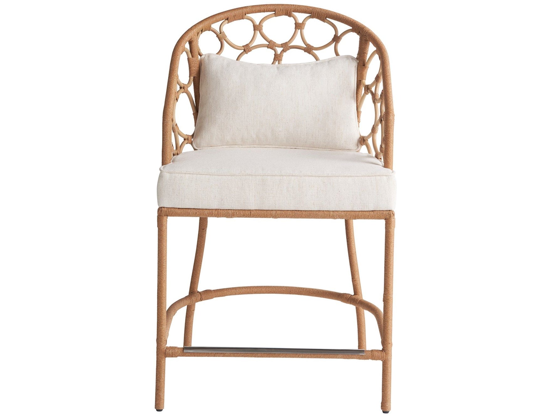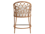 Rattan is woven into a series of circles, creating a soothing pattern in the Pebble Counter Stool. The stool also features an upholstered seat and kidney pillow for added comfort and style.