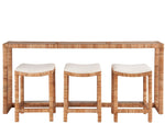 The ultimate expression of beachy-cool, the Sandbar Console with Stools brings depth to interiors with its rattan body and offers additional comfort with its white upholstered matching seats.