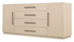 Unit price perThe Westwood Buffet offers understated luxury with practical storage. Featuring four center drawers, two doors with adjustable shelves, and a silverware tray, this buffet is ideal for organizing your dining essentials. The Polished Limestone finish on quartered oak veneers, along with custom bar hardware, brings modern elegance to any dining room. Perfect for those who value both style and functionality.
