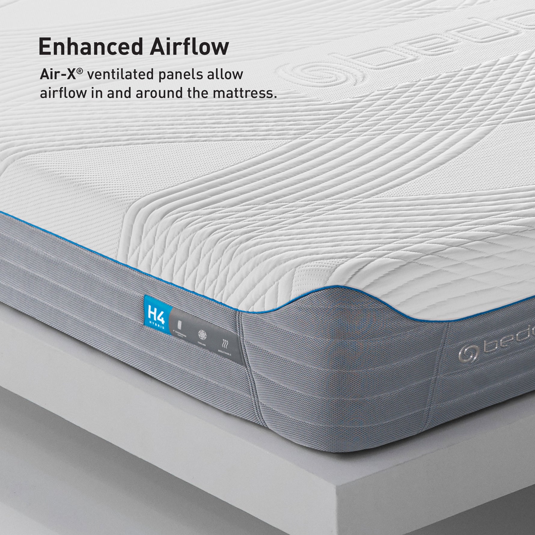 Experience personalized comfort like never before with the H4 Medium Firm Mattress—designed for optimal support, breathability, and all-night cooling comfort. Featuring an interchangeable, modular design, this mattress allows you to customize the firmness of each side to match your unique sleep preferences. With an upgraded Ver-Tex™ cooling cover and enhanced airflow technology, every layer is engineered to promote breathability and regulate temperature, ensuring a restorative and refreshing sleep every night.