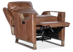 Discover unparalleled comfort and sophistication with the leather Relic Power Recliner. Designed for the modern home, this recliner offers a power headrest and USB port, blending functionality with contemporary style. Its wood finish and button accents on the arm add a touch of elegance. Elevate your living room with this statement piece from Hooker Upholstery.