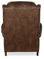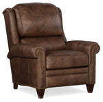 The William Recliner features traditional styling with a spring down cushion and bustle back cushion. The mahogany finish and #9 natural nailheads come standard, however, other finishes and nailhead are available. Pushback recline is standard with an optional power button available for an upcharge.