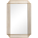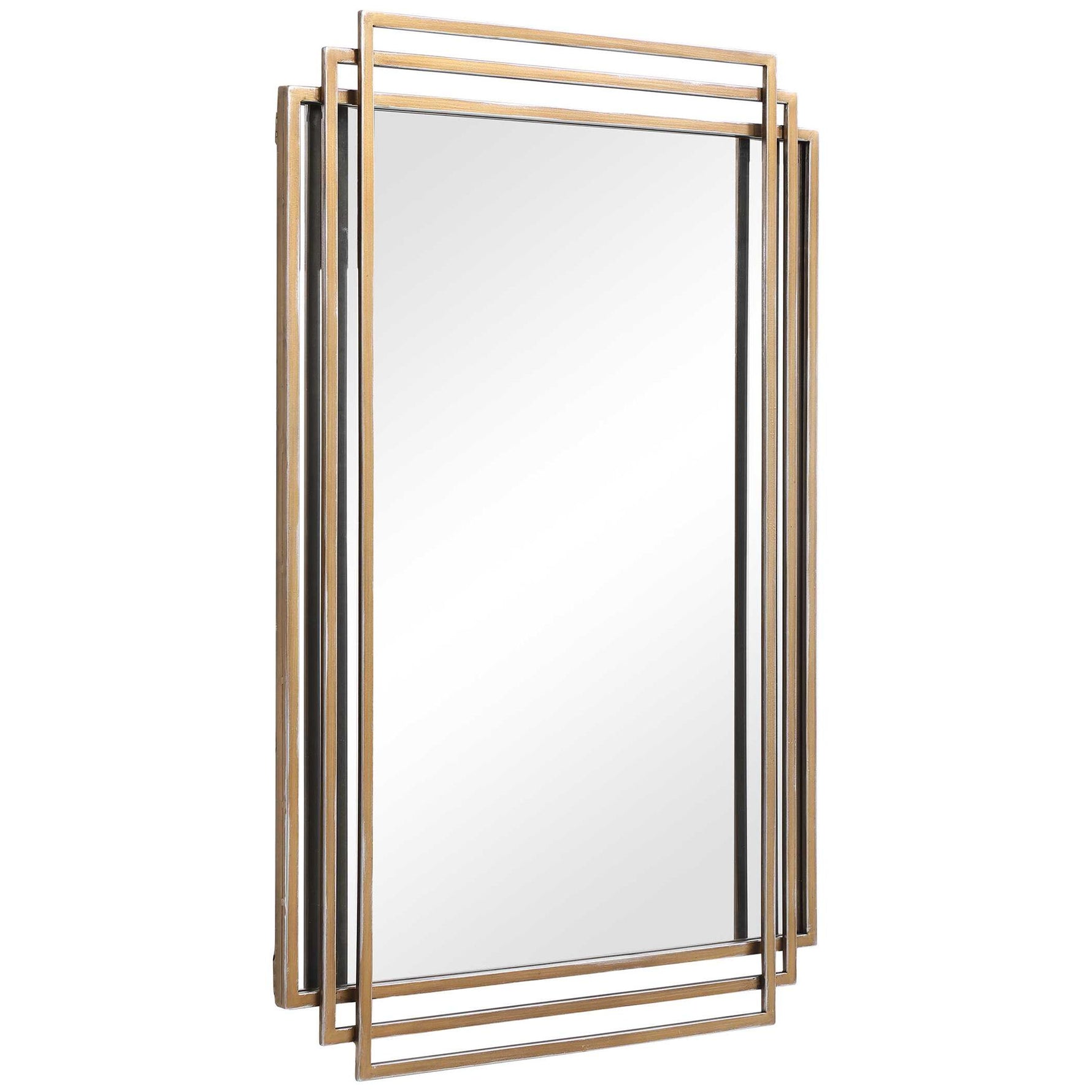 - Showcasing Elegant Lines And A Timeless Style, This Mirror Features An Overlapping Solid Iron Frame Finished In A Sophisticated Distressed Brushed Gold With Silver Highlights. May Be Hung Horizontal Or Vertical.