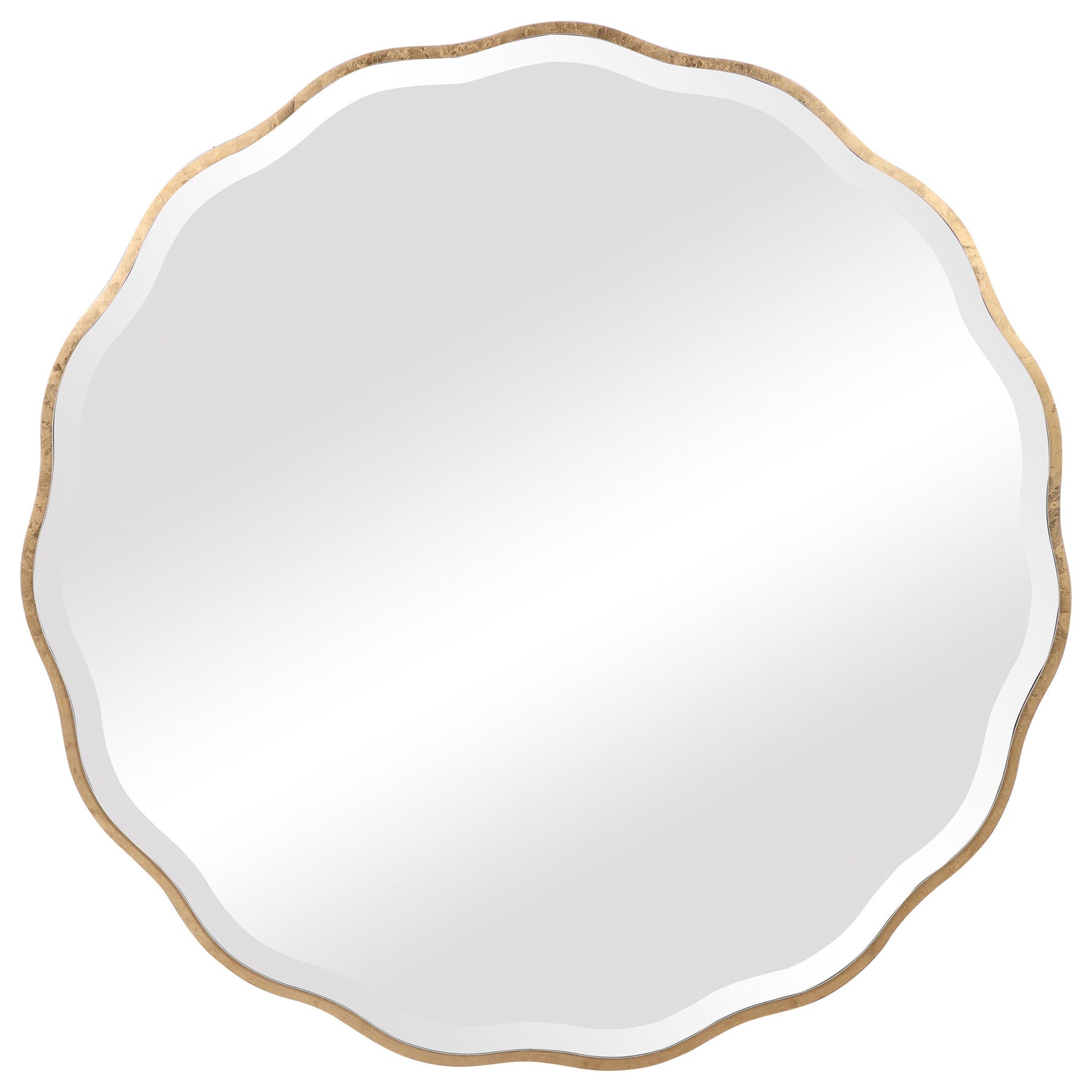 - Showcasing A Feminine Scalloped Edge, This Shaped Wood Mirror Adds Whimsical Flair To Any Design. The Mirror Is Finished In An Antiqued Gold Leaf, And Has A 1" Bevel.