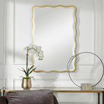 - Showcasing A Feminine Scalloped Edge, This Shaped Wood Mirror Adds Whimsical Flair To Any Design. The Mirror Is Finished In An Antiqued Gold Leaf, And Has A 1" Bevel.