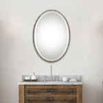 Textured Metal Frame Finished In A Lightly Antiqued Metallic Silver. Mirror Has A Generous 1 1/4" Bevel And May Be Hung Horizontal Or Vertical.