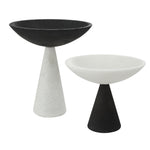 - Set Of Two Modern Pedestal Bowls Are Crafted From A Striking Black And White Man-made Stone That Accurately Replicating The Look Of Thassos Marble. Sizes: S-10x9x10, L-10x12x10
