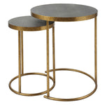 - This Set Of Two Functional Nesting Tables Are Constructed With Metal Bases Finished In An Antique Burnished Brass With Faux Gray Shagreen Wrapped Tops. Sizes: S- 14"x20", L-20"x24"