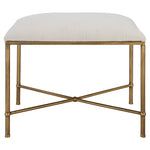 • Thoroughly Modern Yet Inspired By The Classics, This Small Bench Displays A Stylish Iron Frame In A Rich Antique Gold Finish, Upholstered In A Crisp White Textured Fabric.