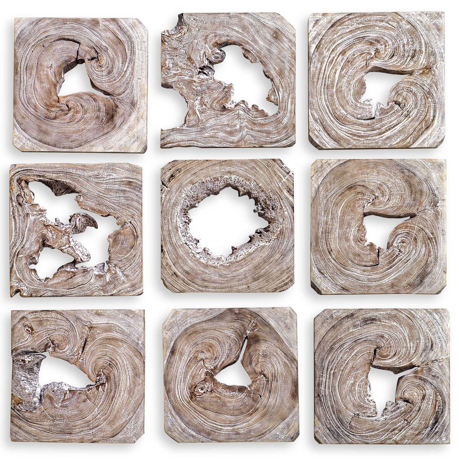 - This Set Of 9 Wood Wall Art Features Solid Natural Suar Wood Finished In A Whitewashed Ivory With Coffee Brown Undertones. Because Each Is Individually Handcrafted, Natural Variation Will Occur From Piece To Piece.
