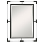 - This Mirror Can Certainly Serve As A Focal Point For Any Room. Combining Forged Iron Finished In Matte Black, With Suspended, Clear Acrylic, Solid Bars Creating A Modern Feel. Mirror Has A Generous 1 1/4" Bevel. May Be Hung Horizontal Or Vertical.