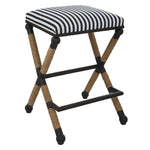 Rustic Iron Frame With A Nautical Touch, Wrapped In Natural Fiber Rope Accents. Cushioned Top Is A Sturdy, Sailor-striped Cotton In Crisp Navy And Cream With Performance Treatment.