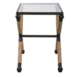 A Nod To Classic Coastal Style, This Accent Table Features A Rustic Iron Frame Wrapped In Natural Fiber Rope Accents Topped With Clear Tempered Glass.