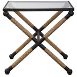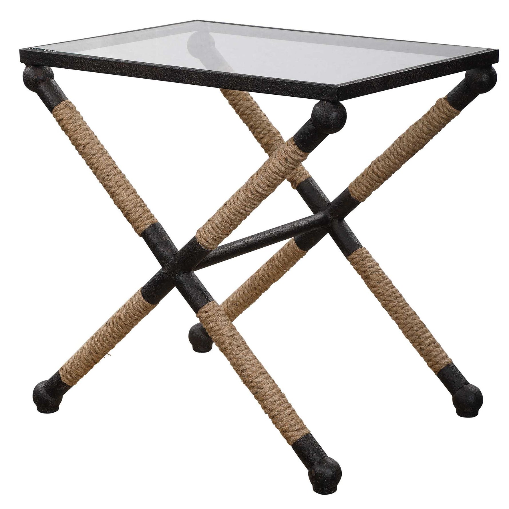 - A Nod To Classic Coastal Style, This Accent Table Features A Rustic Iron Frame Wrapped In Natural Fiber Rope Accents Topped With Clear Tempered Glass.