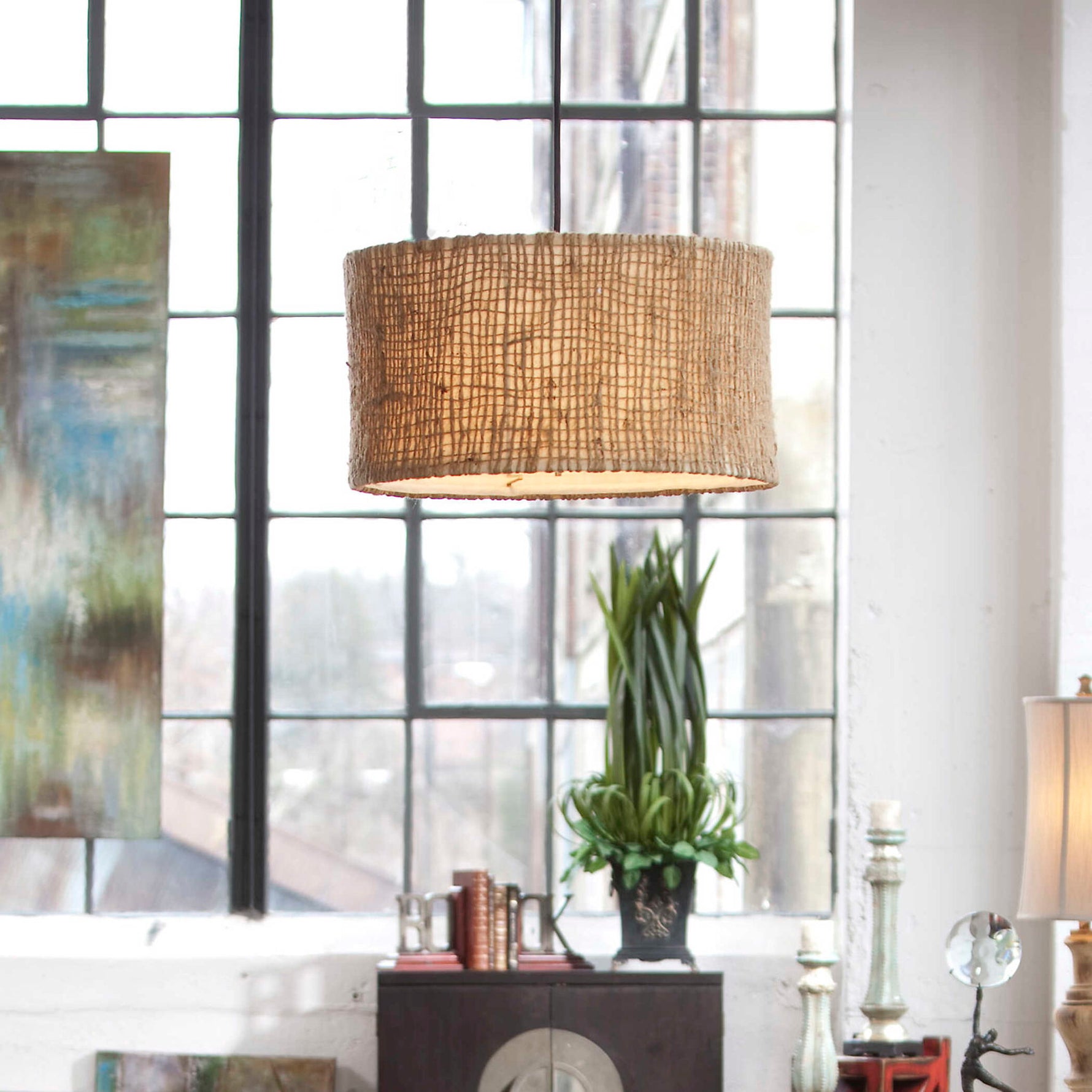 Natural Twine With An Open Weave Construction And A Beige Inner Liner Creates A Rustic, Yet Unique Appeal. With Frosted Glass Diffuser. 3-60 Watt Max, Edison Sockets. Bulbs Not Included. Supplied With 10' Cord For Adjustable Installation.