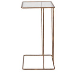 • Minimally Designed With Versatility, This Petite Hand Forged Iron Accent Table Is Finished In Heavily Antiqued Gold With A Clear Tempered Glass Top.