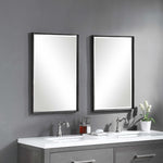 This Simple Vanity Mirror Features An Iron Construction With Detailed Edges. The Slight Profile Frame Is Finished In A Distressed Rustic Black With Aged Champagne Highlights. This Mirror May Be Hung Horizontal Or Vertical.