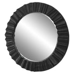 Taking Inspiration From Lodge Style, This Round Mirror Features A Fir Wood Frame With Natural Wood Grain Details In A Dark Espresso Finish And A Carved Asymmetrical Scalloped Design. Mirror Has A 1 1/4" Bevel.